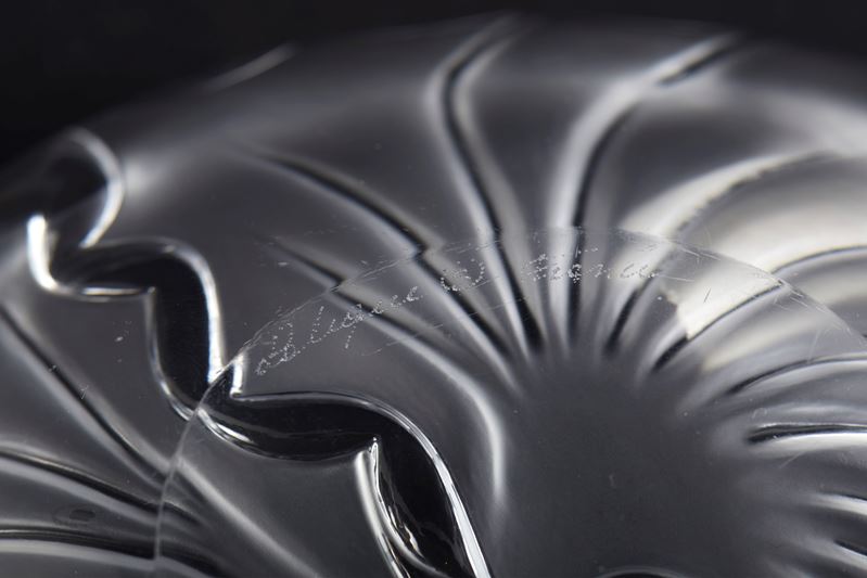 LALIQUE Posacenere in vetro satinato. XX secolo, Francia. Cm 7x21,5x17,5. Reca sotto la base firma a punta di diamante Lalique Francia.