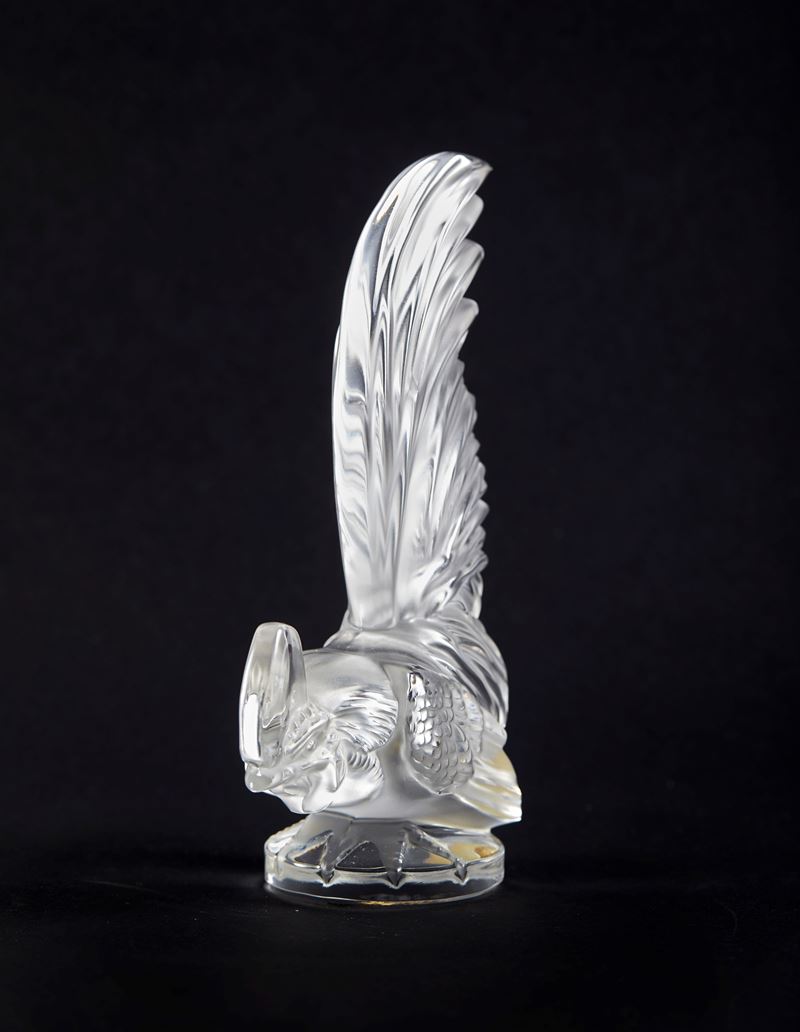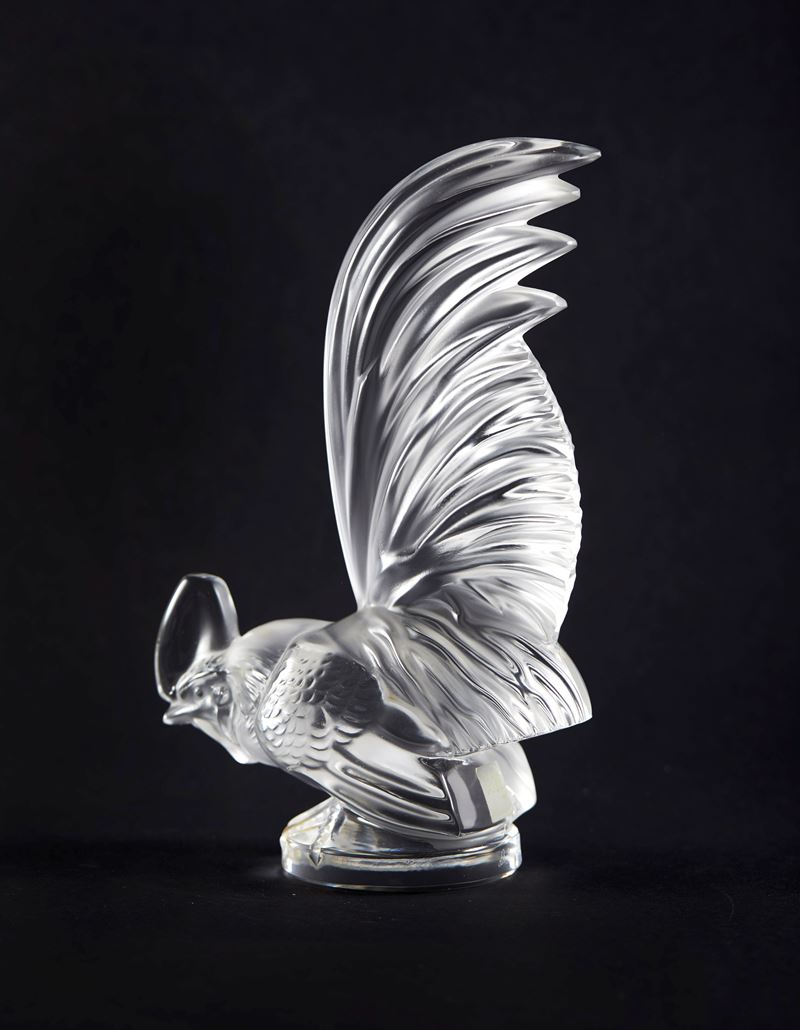 LALIQUE Scultura raffigurante gallo. XX secolo, Francia. Cm 21x13. Al retro reca firma a punta di diamante Lalique France.