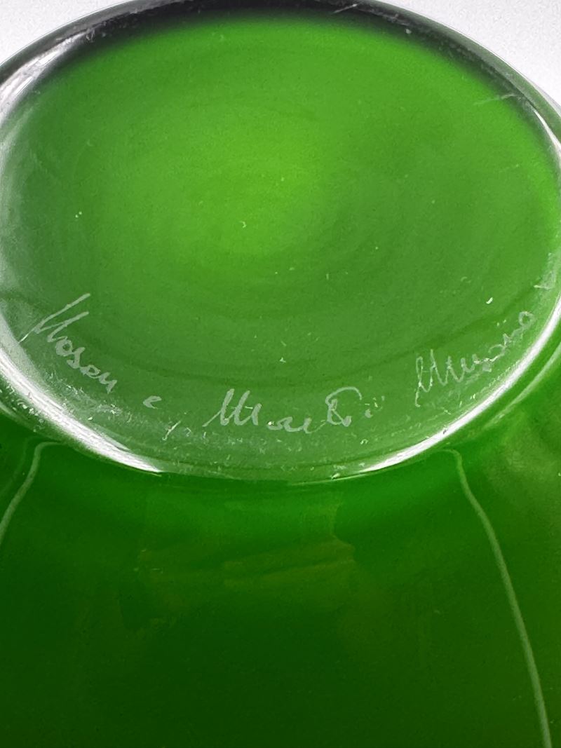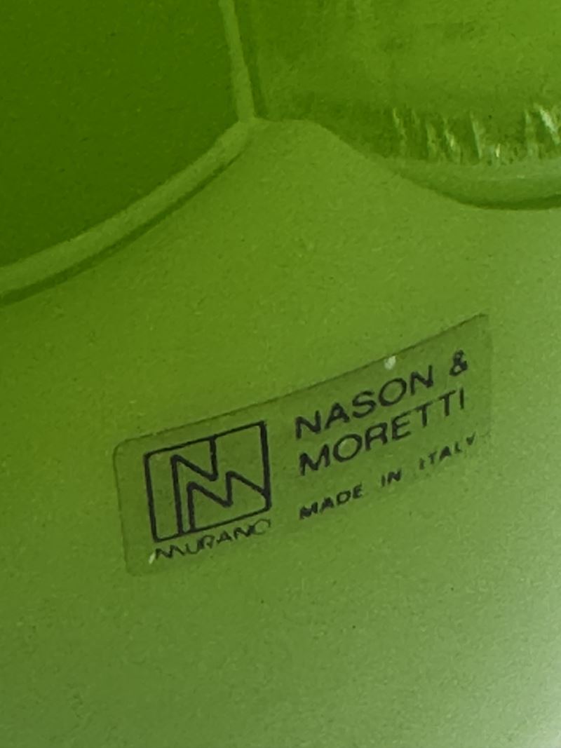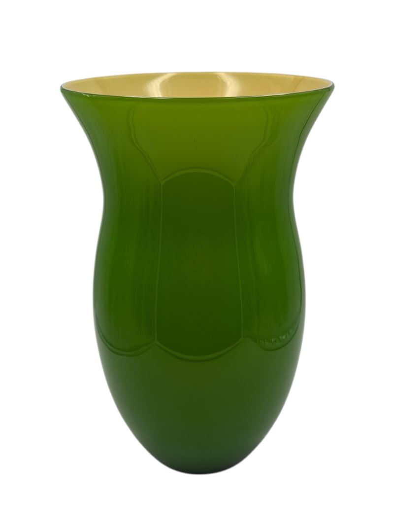 CARLO MORETTI e CARLO NASON Vaso in vetro di Murano verde. XX secolo. Prod. Nason & Moretti. Cm 32,5x19. Reca etichetta Nason & Moretti.