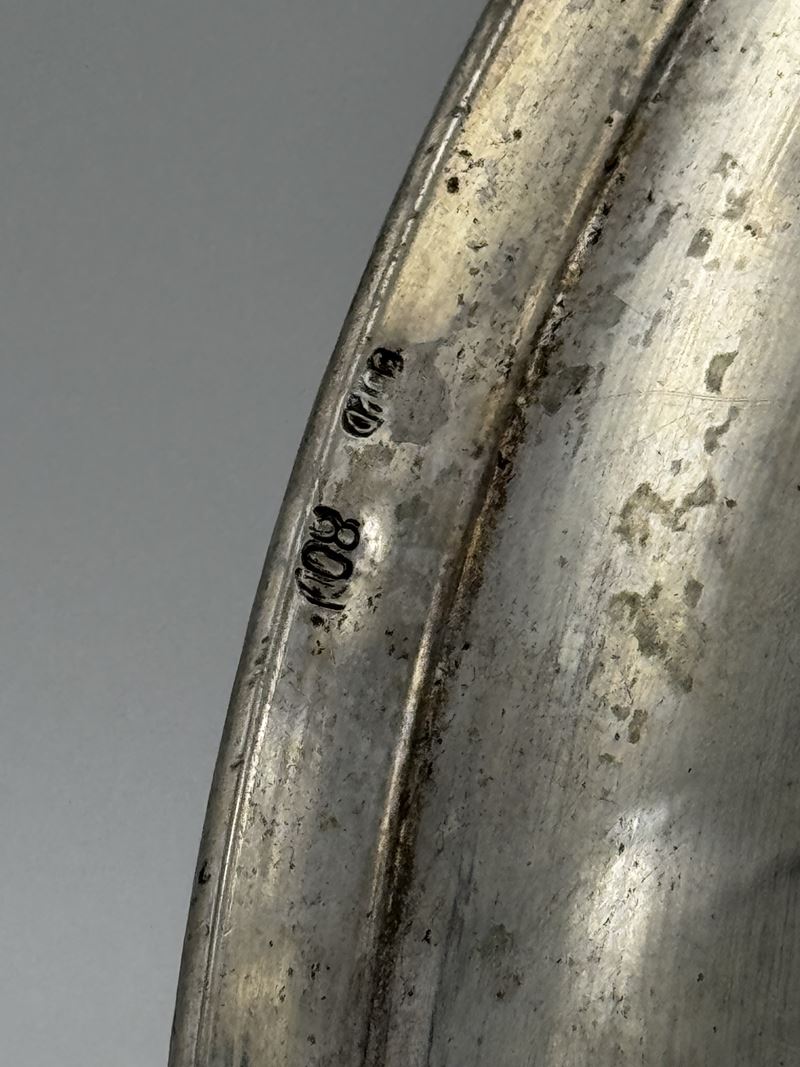 Piatto in Argento 800. XX secolo. Cm diametro 30. Reca punzone 800. Peso: 500 gr.