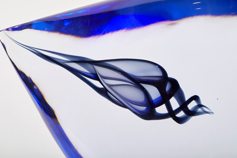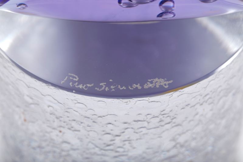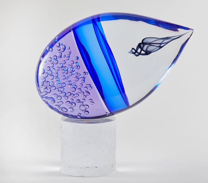 PINO SIGNORETTO (Favaro Veneto 1944 - Venezia 2017) "Cometa". Scultura in vetro blu e viola. 1990 circa. Cm 34x35. Reca sulla base firma a punta di diamante Pino Signoretto.