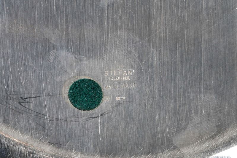 STEFANI, Bologna. Piatto in argento 800. Cm diametro: 23. Reca punzoni: Stefani Bologna, 800, Lavorato a mano. Peso: 277 gr.