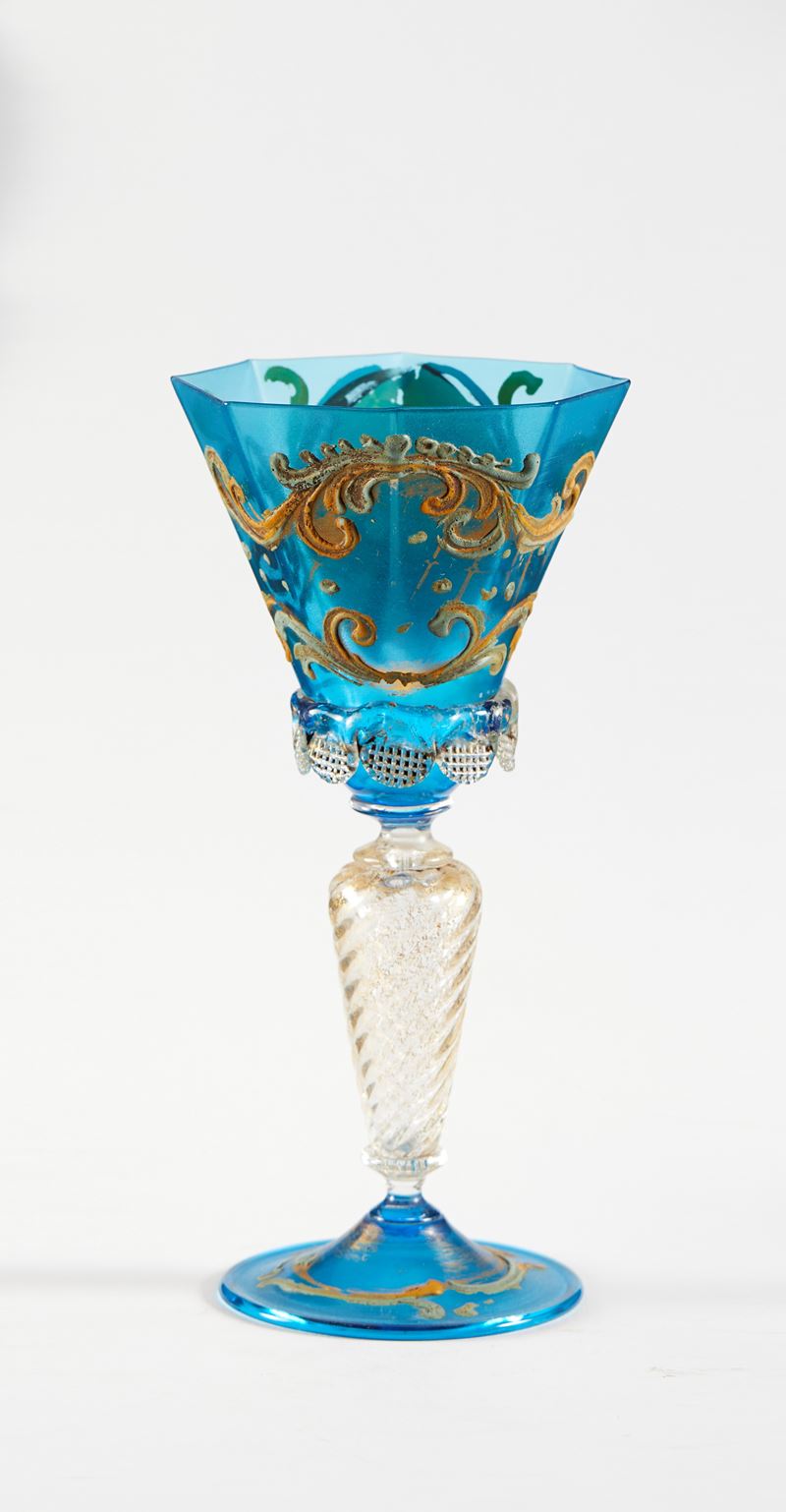 Tipetto in vetro di Murano, fine del XVIII secolo. Cm h 21.
