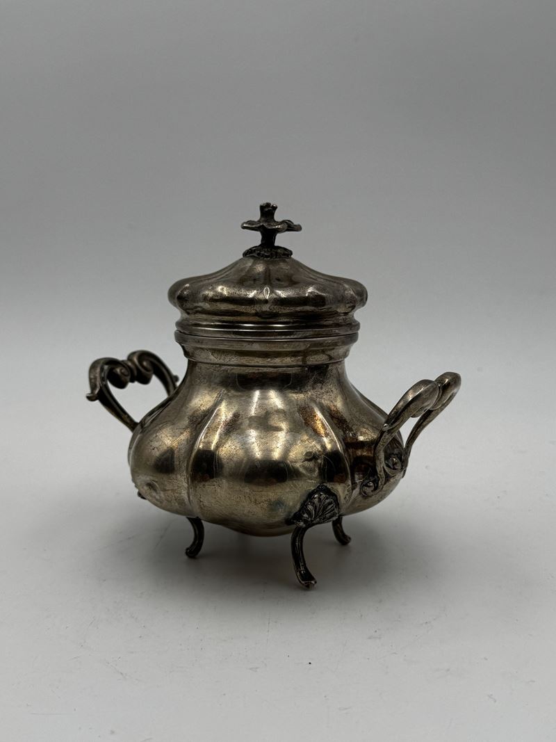 Zuccheriera in argento 800. XX secolo, Italia. Reca punzone 800. Peso: 215 gr.
