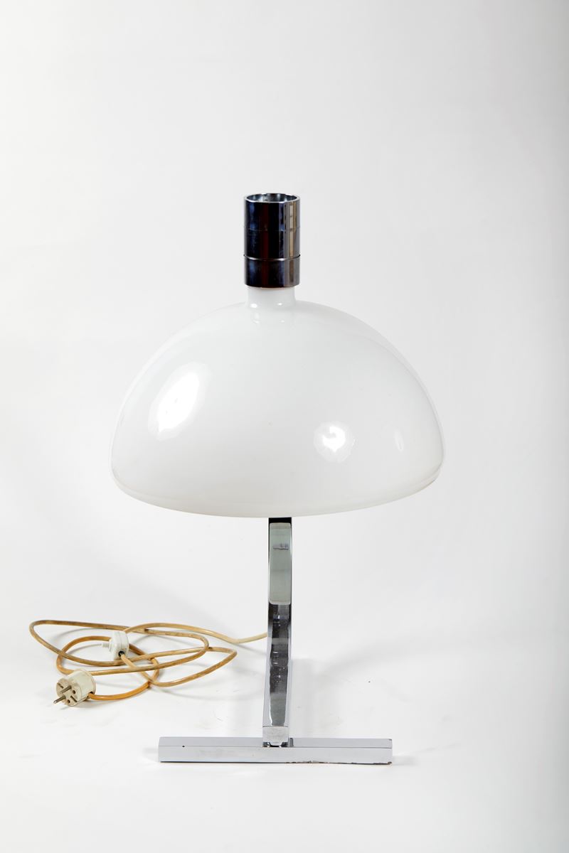 FRANCO ALBINI, FRANCA HELG, ANTONIO PIVA Lampada da tavolo modello AM / AS in acciaio e vetro opalino. Prod. Sirrah, Italia, 1969. Cm 64x49x38,5.