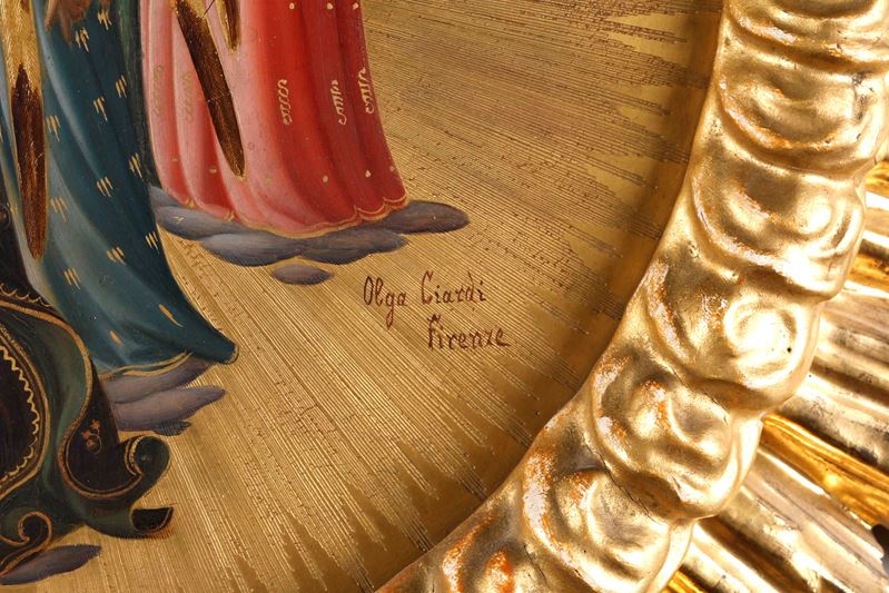 OLGA CIARDI (XIX secolo) "Angeli". Olio su tavola. Cm 25,5; (con cornice) 56. Opera firmata in basso a destra Olga Ciardi Firenze.