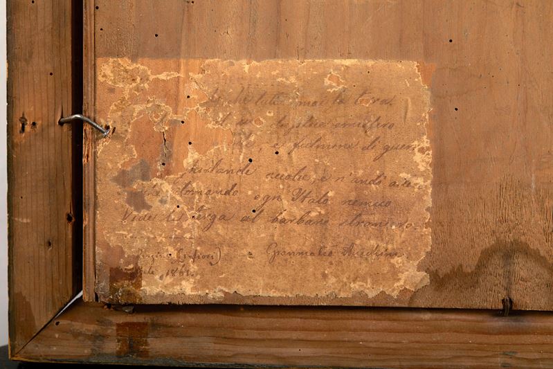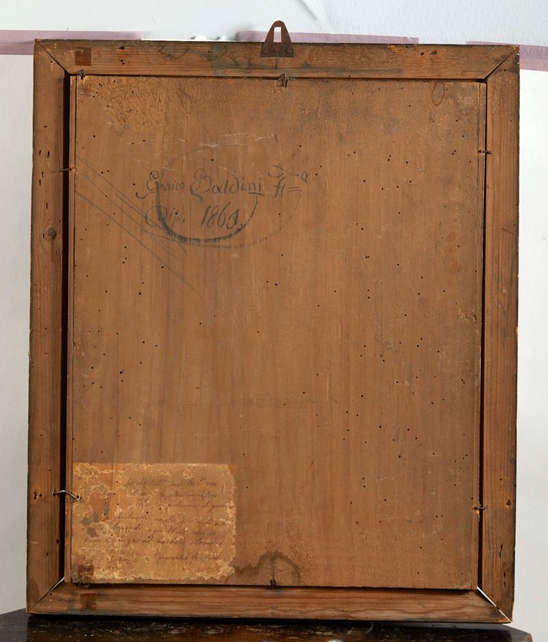 ENRICO BALDINI “Garibaldi”, 1861. Olio su tavola. Cm 48x39. Opera firmata e datata al retro Enrico Baldini 1861.