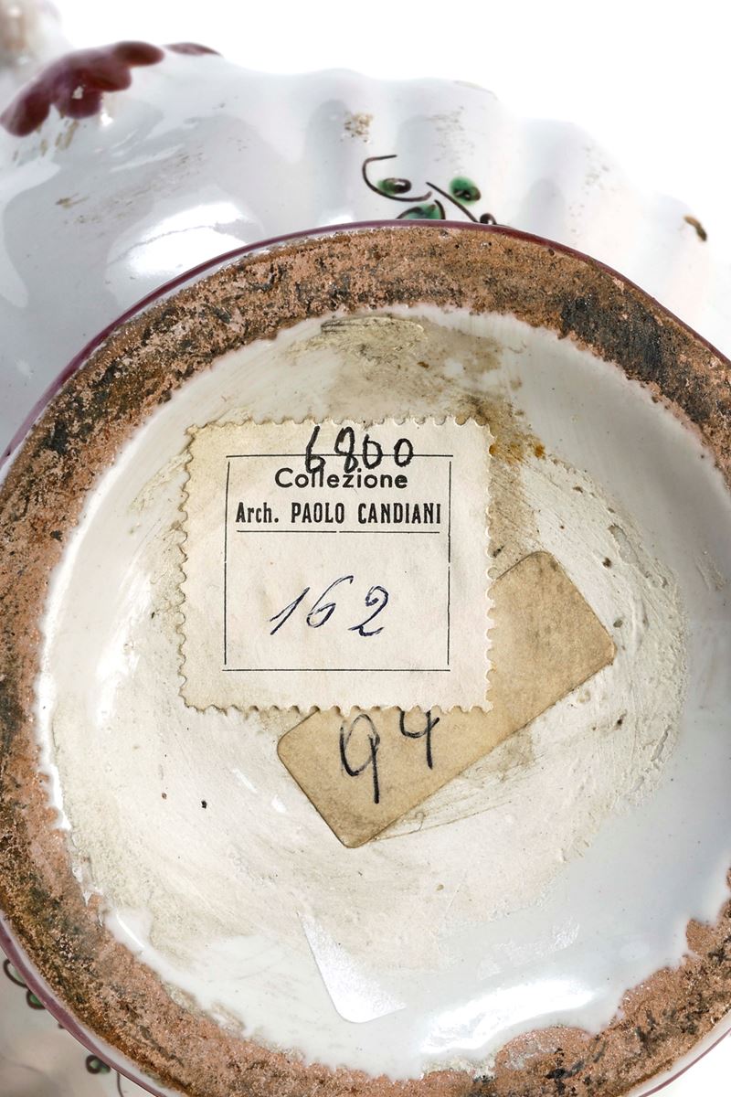 Brocca in ceramica smaltata. XX secolo. Cm 28x17x11. (difetti)