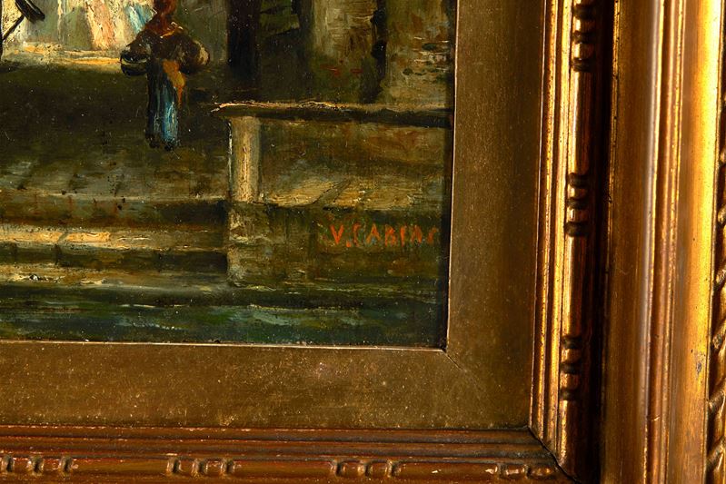 VINCENZO CABIANCA (Verona 1827 - Roma 1902) attr. "Senza titolo". Olio su tavola. Cm 35x24. Opera firmata in basso a destra V. Cabianca. Al retro reca firma e scritta Catalogato Comanducci.
