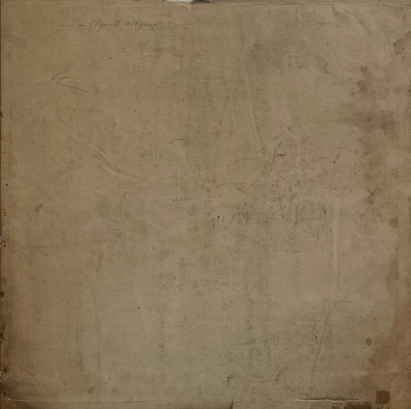 Maestro del XIX secolo, "Antigone e il padre Edipo". Matita su carta. Cm 46x46,5