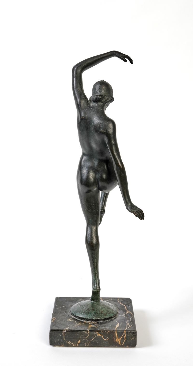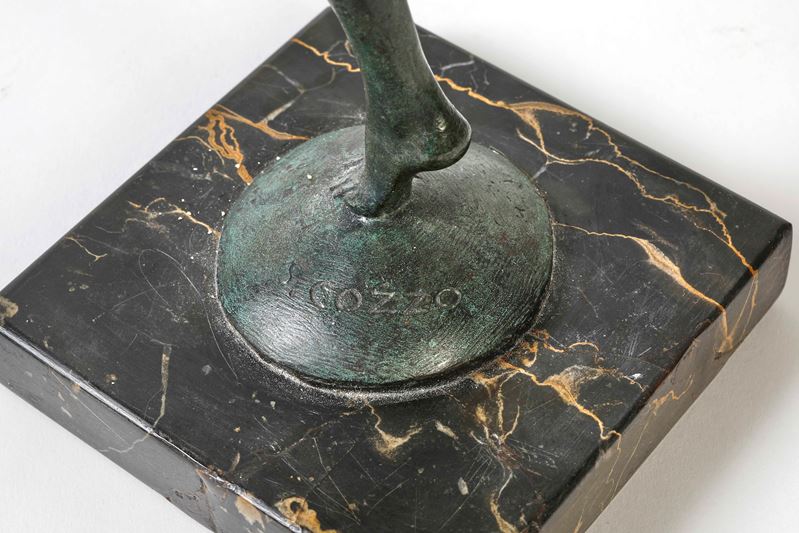 SALVATORE COZZO (Taormina 1899 -) Scultura "Fanciulla" in bronzo. XX secolo. Cm 31,5x9. Alla base reca firma S. Cozzo.