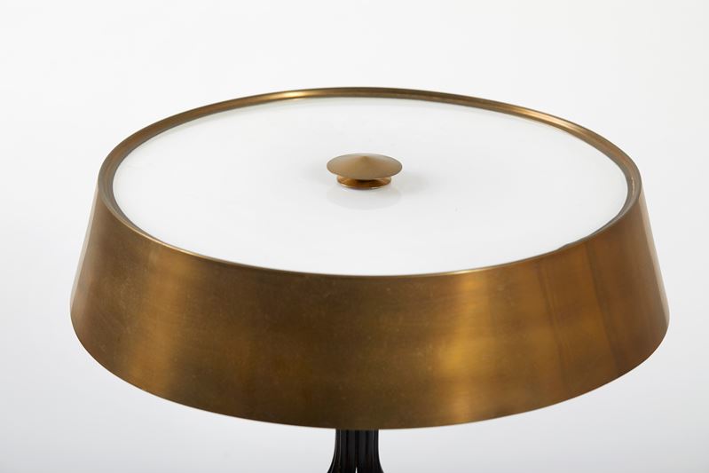 MAX INGRAND attr. Lampada da tavolo con paralume in ottone. Cm: 54x35. Prod. Fontana Arte, Italia.