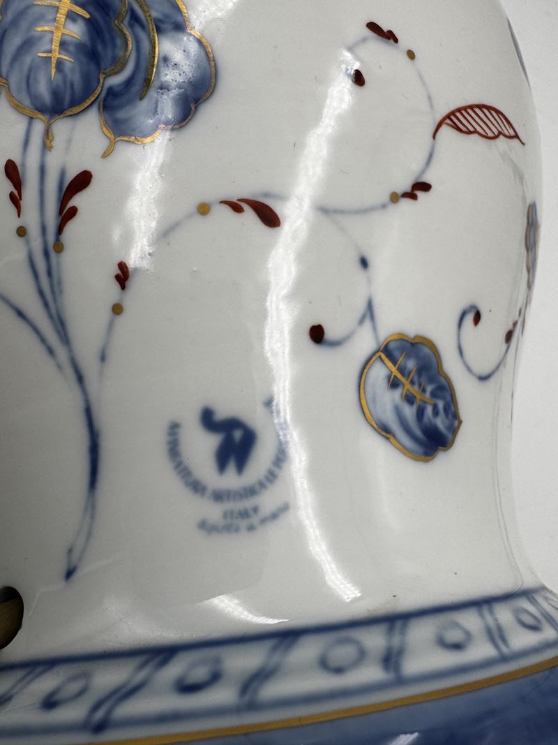 MANIFATTURA ARTISTICA LE PORCELLANE Lampada in ceramica decorata. XX secolo, Italia. Cm 56x20. Reca marchio Manifattura Artistica le Porcellane.