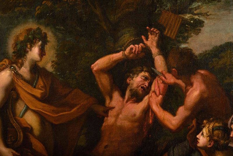 FILIPPO LAURI (Roma 1623 - Roma 1694) attr. "Apollo e Marsia". XVII secolo. Cm 74,5x98. Opera accompagnata da uno scritto di attribuzione del Professor Menicucci.