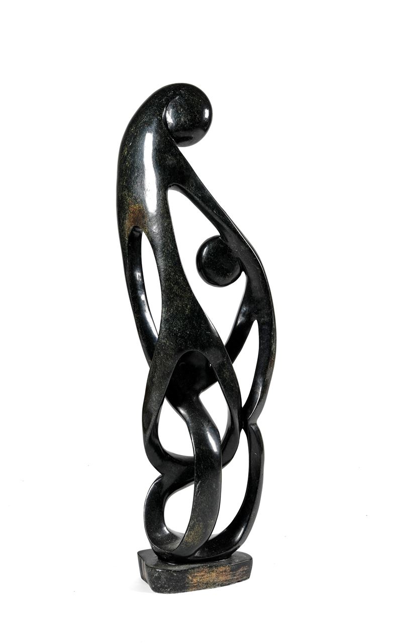 "Maternità". Statua in marmo nero proveniente dal Guadalupe. Cm 108x33x11