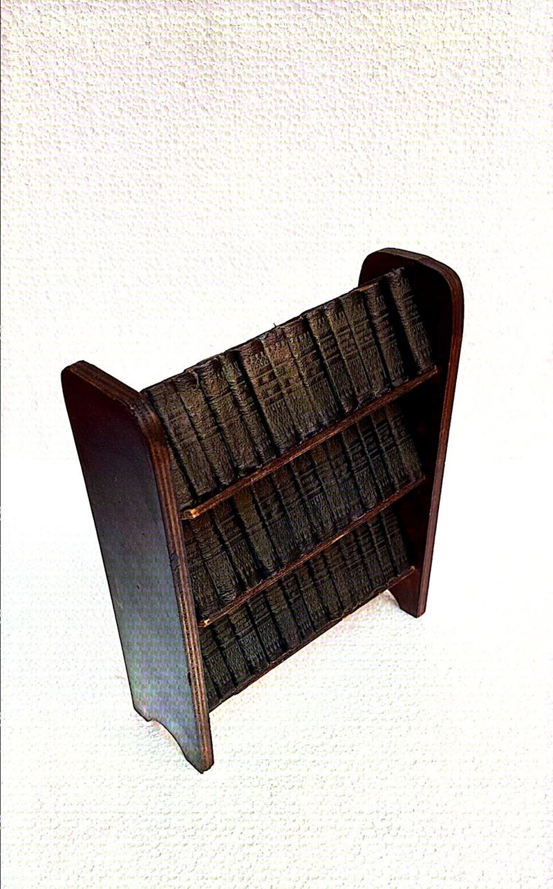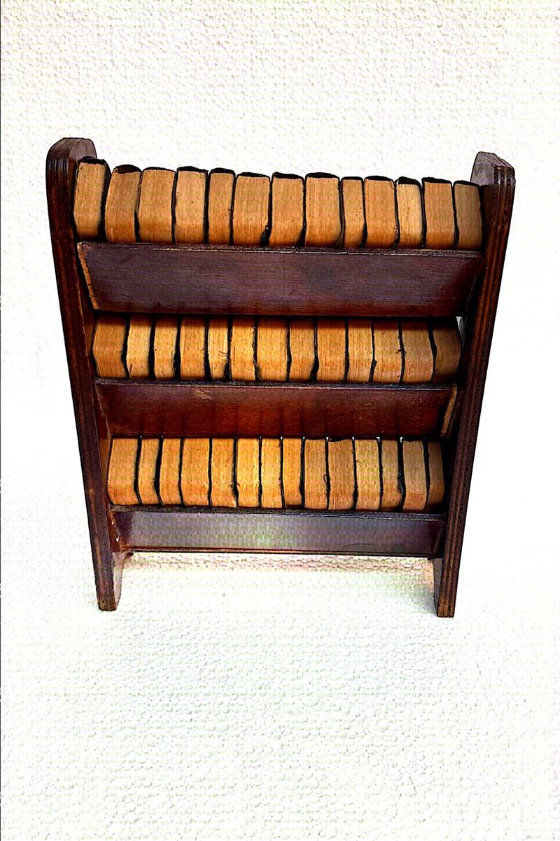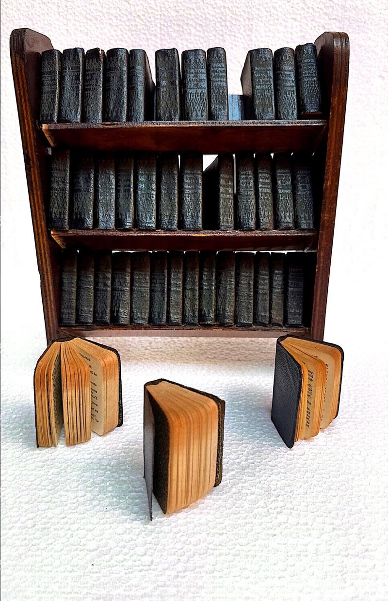 Mini libreria contente 40 miniature della raccolta di opere di Shakspeare. 1932. Cm 24x19x7. Edizione Allied Newspapers Ltd, London.
