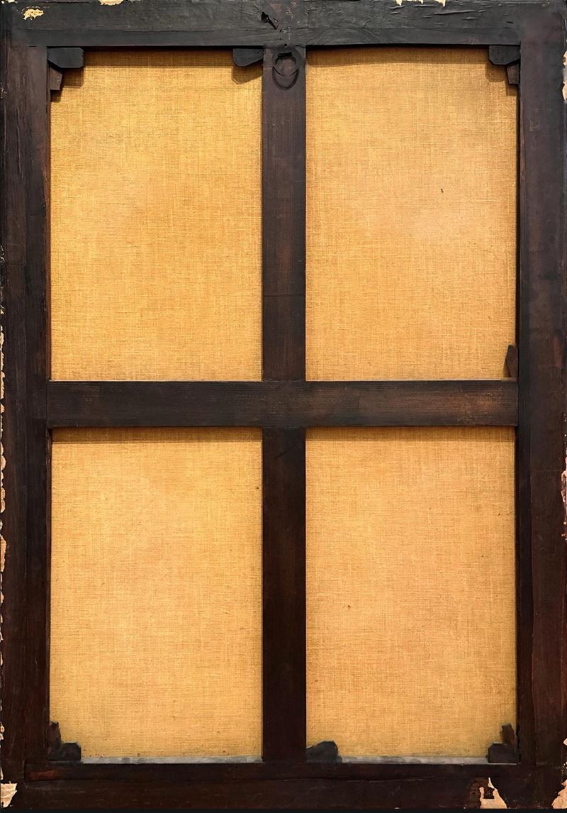 Pittore anonimo del XVII secolo. "Paesaggio con figure". Olio su tela. Cm 125x93,5.