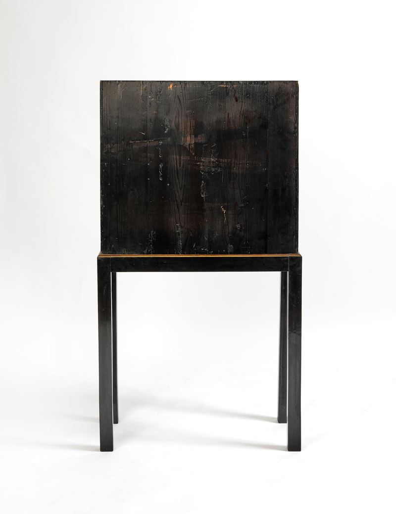 Secretaire in stile orientale in legno nero dipinto. metà del XX secolo. Cm 130x66,5x33.