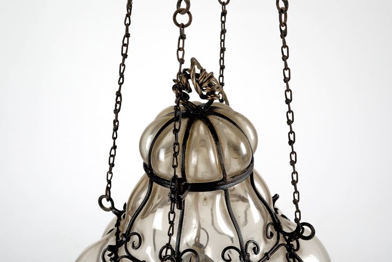 SEGUSO Lanterna a una luce in in vetro soffiato di Murano e ferro. 1950 circa. Italia. Cm 40x27.