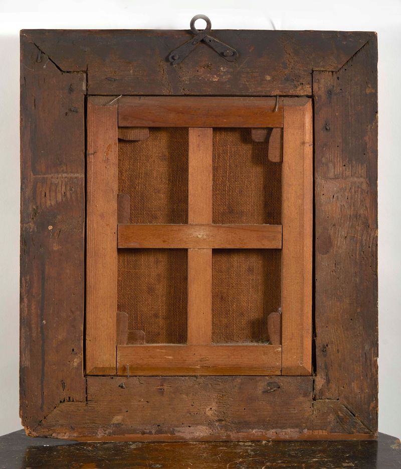 Maestro del XVII secolo, "Madonna con Bambino e San Giovannino". Olio su tela. Cm 35x28,5.