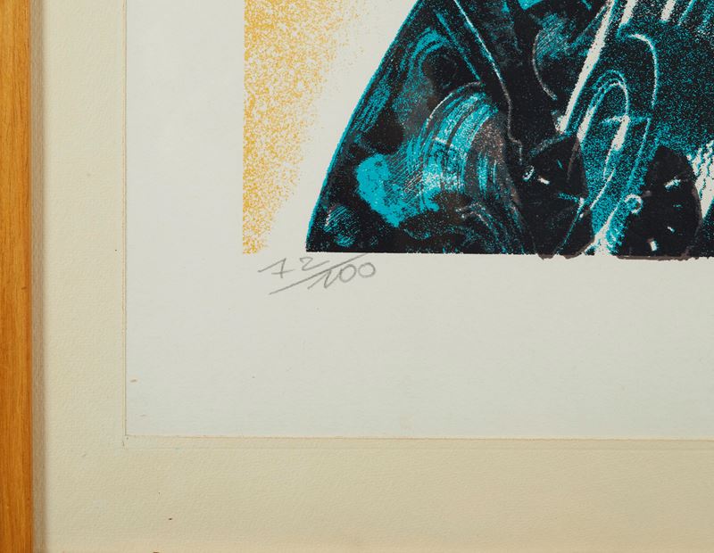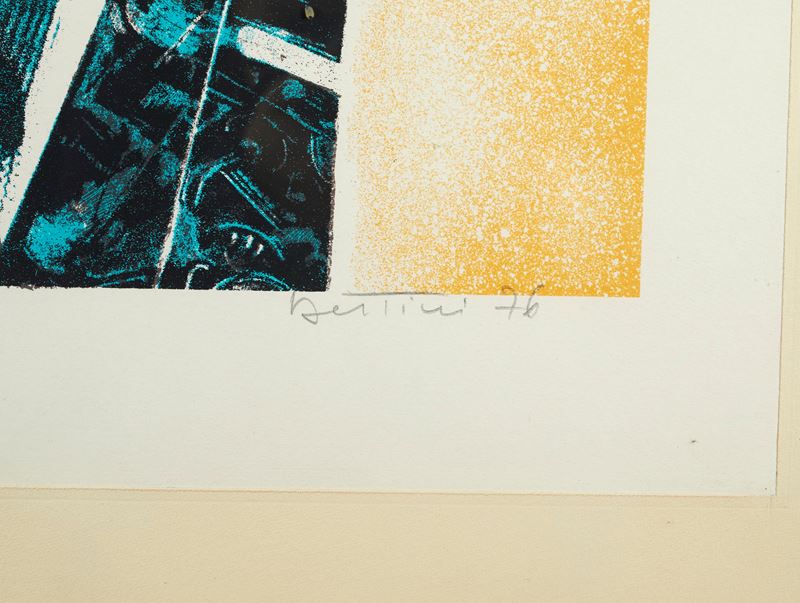 GIANNI BERTINI (Pisa 1922 - Caen 2010) "Senza titolo", 1976. Litografia a colori su carta. Cm 70x50. Opera firmata e datata in basso a destra. Reca numeri di tiratura in basso a sinistra 72/100.