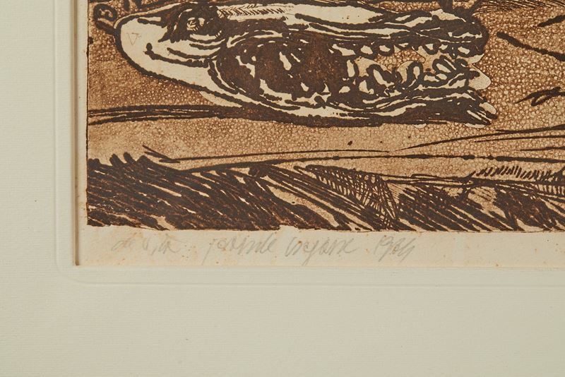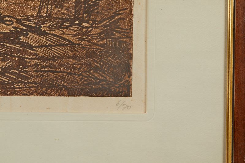 LUCIANO DE VITA (Ancona 1929 - Bologna 1992) "Senza titolo", 1964. Acquaforte su carta. Cm lastra: 46,5x59. Opera firmata, datata e intitolata in basso a sinistra de Vita, 1964, titolo. Reca numeri di tiratura in basso a destra 6/70.