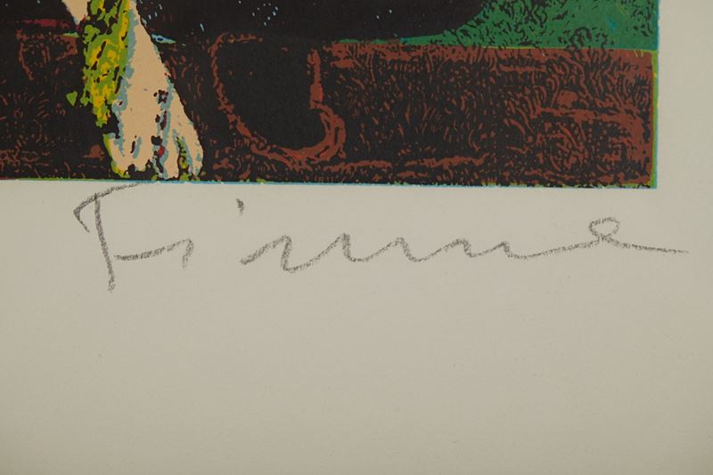SALVATORE FIUME (Comiso 1915 - Milano 1997) "Odalisca". Litografia a colori su carta. Cm 50x70. Opera firmata in basso a destra Fiume. Reca numeri di tiratura in basso a sinistra p. di a.