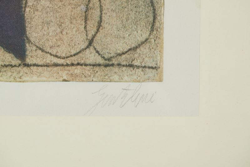 Franco Gentilini (Faenza 1909 - Roma 1981) "Senza titolo". Litografia a colori su carta. Cm lastra: 46x68. Opera firmata in basso a destra Gentilini. Reca numeri di tiratura in basso a sinistra 23/200.