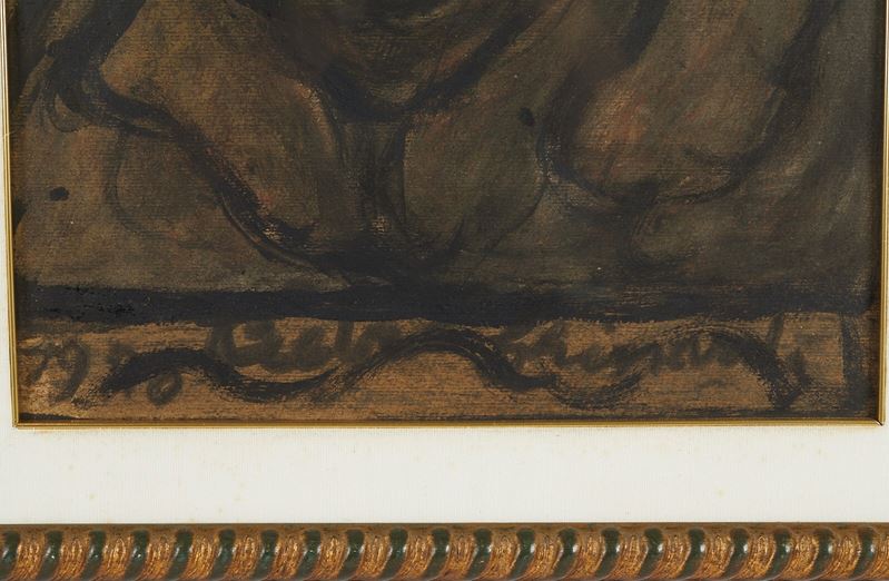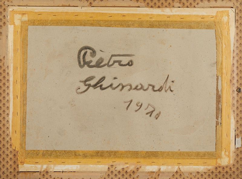 PIETRO GHIZZARDI (Viadana 1906 - Boretto 1986) "Figura", 1970. Tecnica mista su cartoncino. Cm 68x45,5. Opera firmata e datata in basso a sinistra Pietro Ghizzardi 1970. Al retro opera firmata e datata Pietro Ghizzardi 1970.