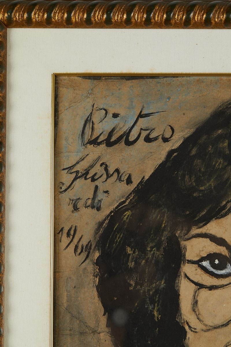 PIETRO GHIZZARDI (Viadana 1906 - Boretto 1986) "Figura", 1969. Tecnica mista su cartoncino. Cm 76x48. Opera firmata e datata in alto a sinistra Pietro Ghizzardi 1969.