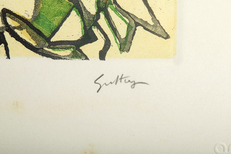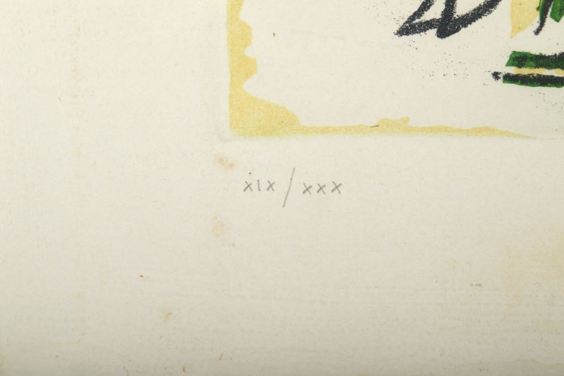 RENATO GUTTUSO (Bagheria 1911 – Roma 1987) “Agrumeto”. Litografia a colori su carta. Cm lastra: 50x76. Opera firmata in basso a destra Guttuso. Reca numeri di tiratura in basso a sinistra XIX/XXX.