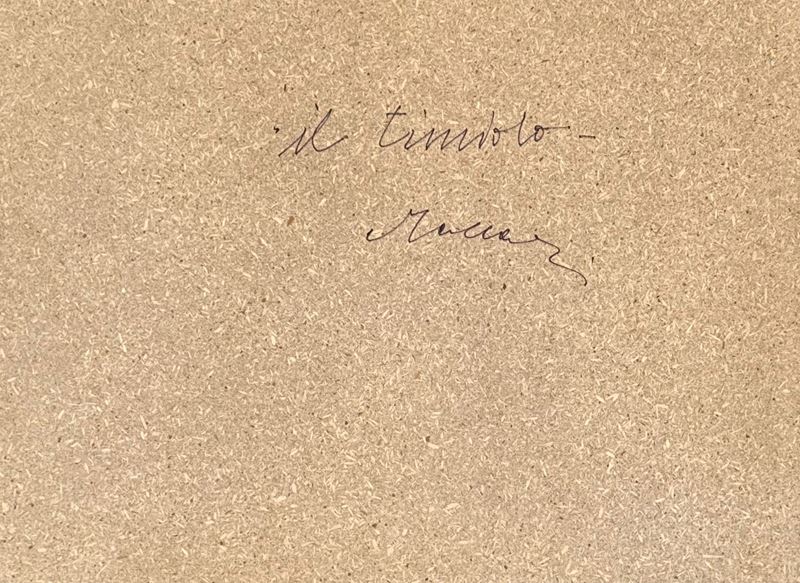 MINO MACCARI (Siena 1898 - Roma 1989) "Il timido". Olio e tecnica mista su tavola. Cm 42,5x57,5. Opera firmata in basso a destra Maccari. Al retro opera intitolata e firmata il timido Maccari.