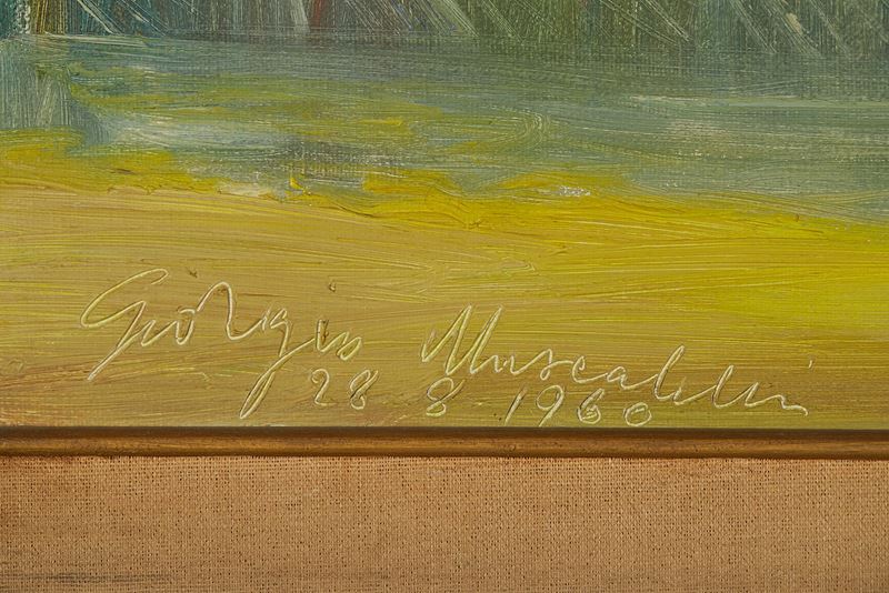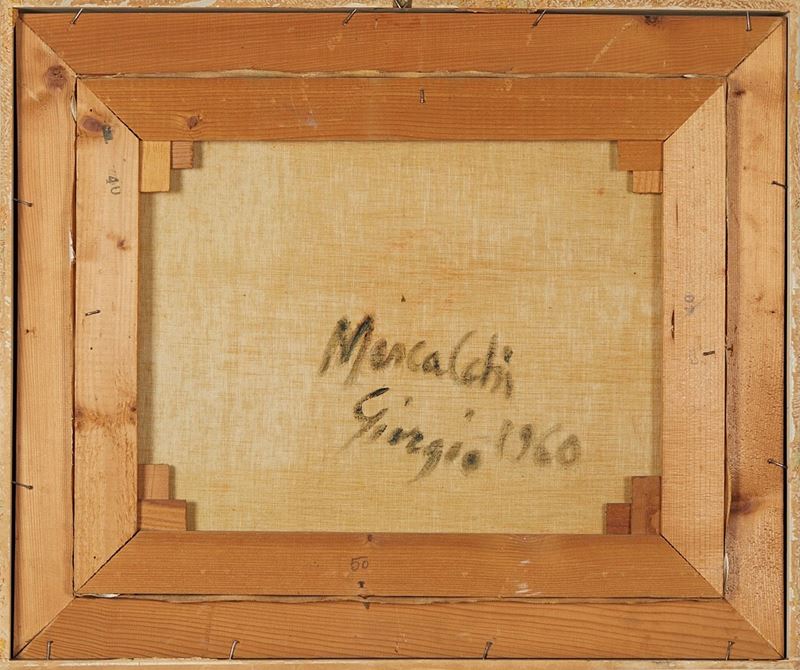 GIORGIO MASCALCHI (Bologna 1935 - Forlì 2010) "Paesaggio", 1960. Olio su tela. Cm 40x50. Opera firmata in basso a sinistra Giorgio Mascalchi 28/8/1960. Al retro opera firmata e datata Giorgio Mascalchi 1960. (lievi difetti)