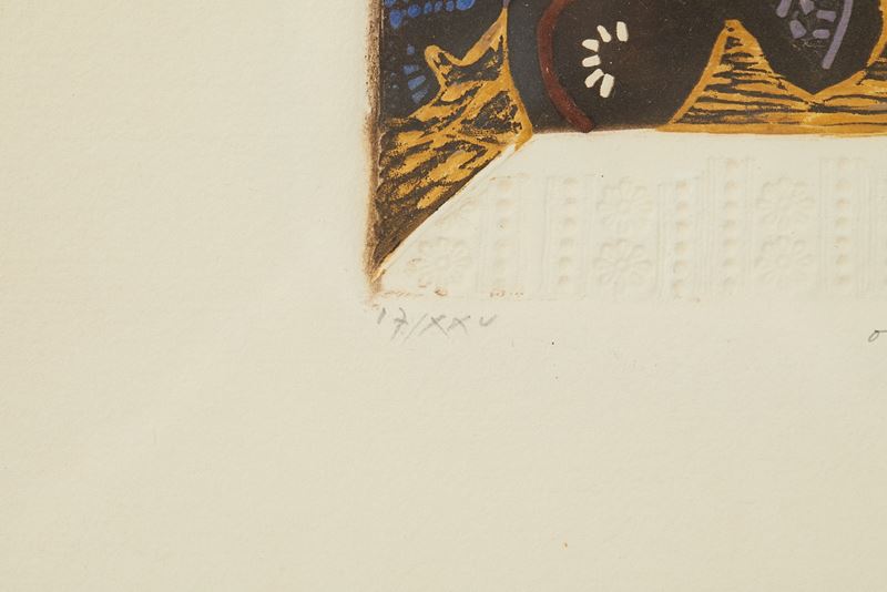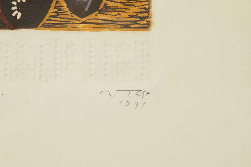 JOSE' ORTEGA (Arroba de los Montes 1921 - Parigi 1990) "Senza titolo", 1971. Litografia a colori su carta. Cm foglio: 28x38. Opera firmata e datata in basso a destra Ortega 1971. Reca numeri di tiratura in basso a sinistra 17/XXV.