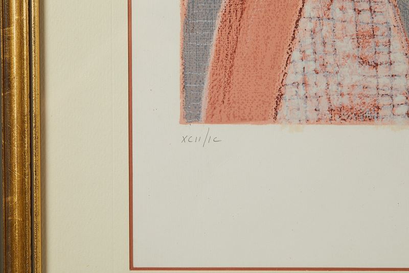 Mario Tozzi (Fossombrone 1895 - Saint-Jean-du-Gard 1979) "Tre figure", 1978. Litografia a colori su carta. Cm 75x58,5. Opera firmata in basso a destra Tozzi. Reca numeri di tiratura in basso a sinistra XCII/IC.