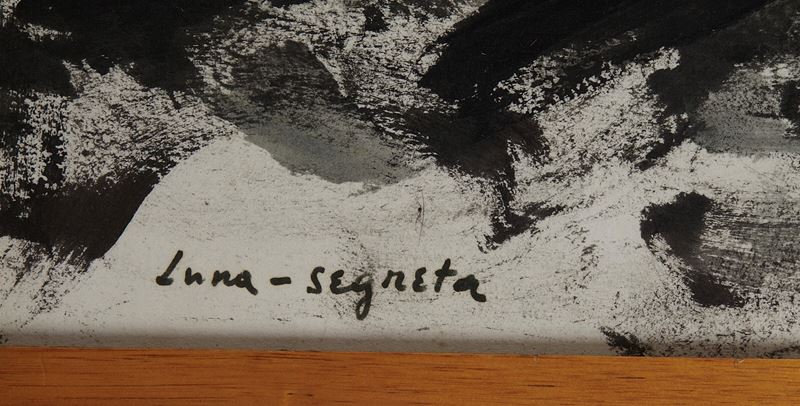 ALTAMIRA ADRIANO (Milano 1947) "Luna segreta", 1986. Tecnica mista e collage su carta applicata su tavola. Cm 100x150. Opera firmata e datata in basso a destra Adriano Altamira 86. Opera intitolata in basso a sinistra Luna segreta.