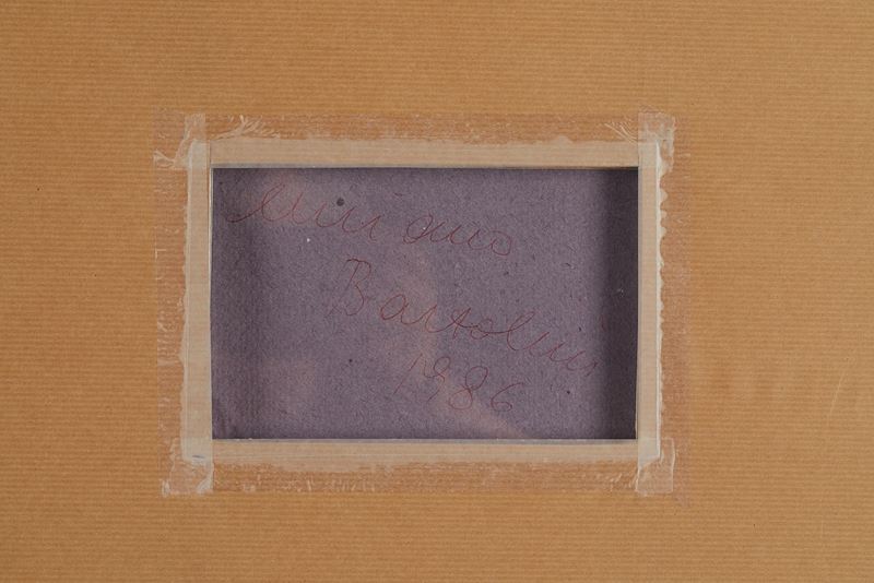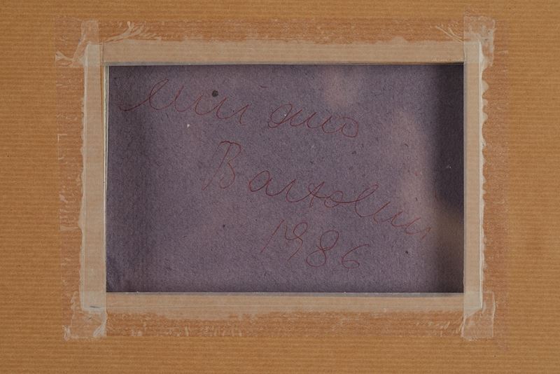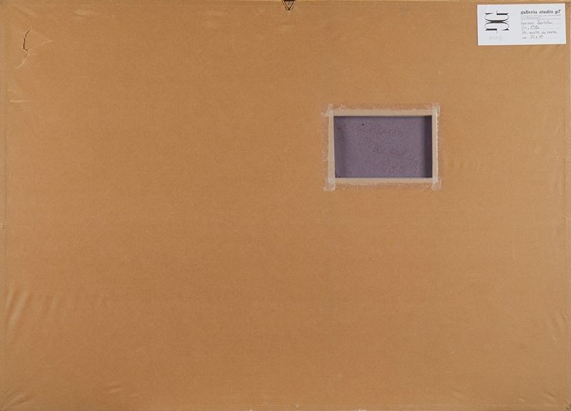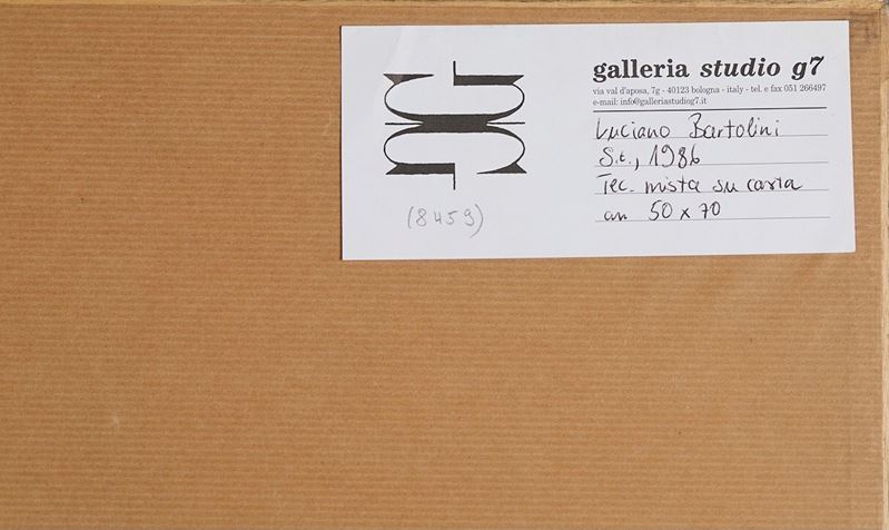LUCIANO BARTOLINI (Fiesole 1948 - 1994) "Senza titolo", 1986. Tecnica mista, collage e foglia oro su carta. Cm 50x70. Opera firmata e datata al retro Luciano Bartolini 1986.