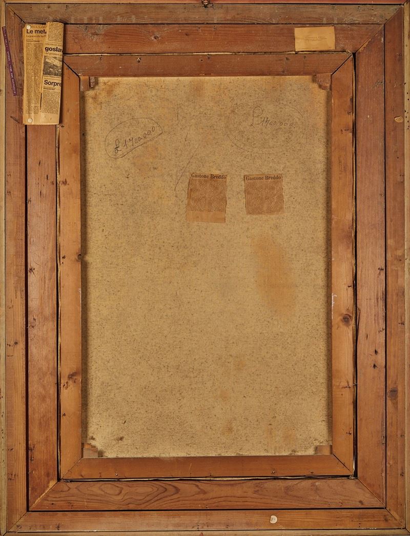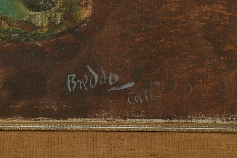 GASTONE BREDDO (Padova 1915 - Calenzano 1991) "Vaso con cartoccio". Olio su tela. Cm 100x70. Opera firmata in basso al centro Breddo.