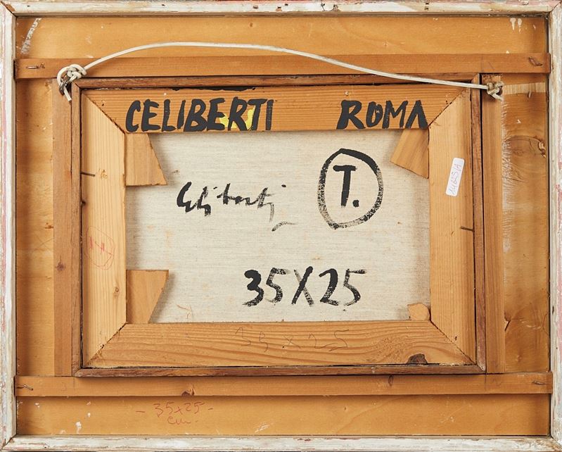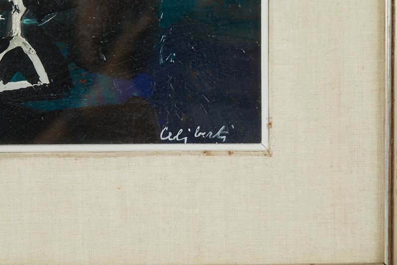 GIORGIO CELIBERTI (Udine 1929) "Senza titolo". Olio su tela. Cm 25x35. Opera firmata in basso a destra Celiberti. Al retro reca firma G. Celiberti.