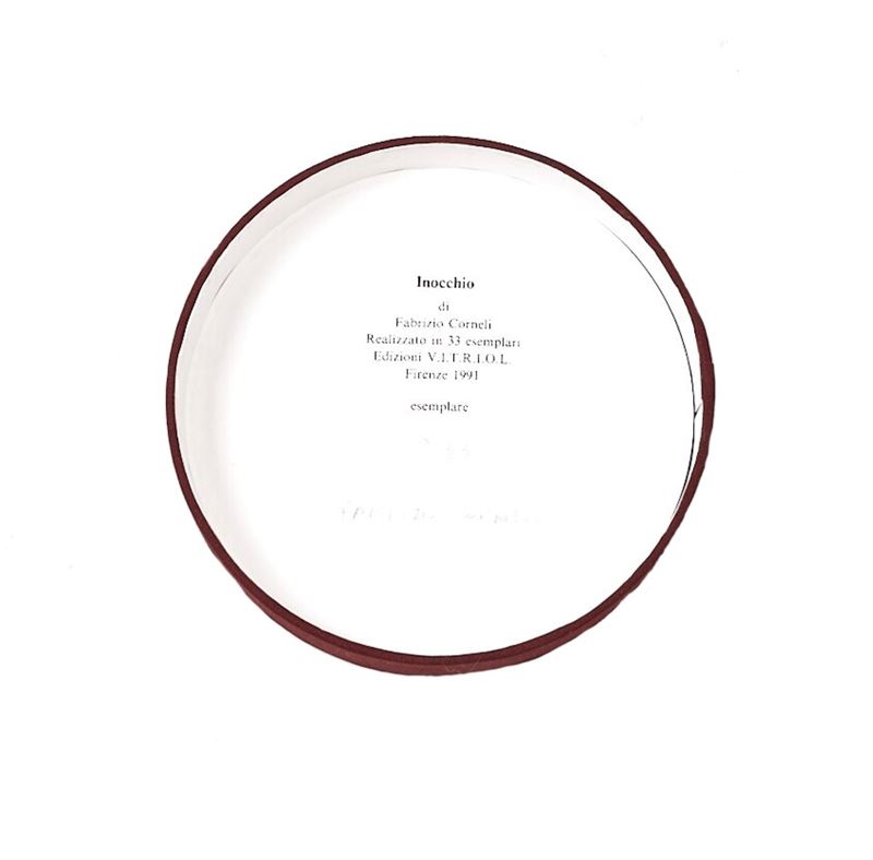 CORNELI FABRIZIO (Firenze 1958) "In Occhio", 1991. Scultura realizzata in 33 esemplari. Edizioni V.I.T.R.I.O.L. Firenze. Cm 18,5x13,5. Esemplare 6/33. Opera firmata Corneli.