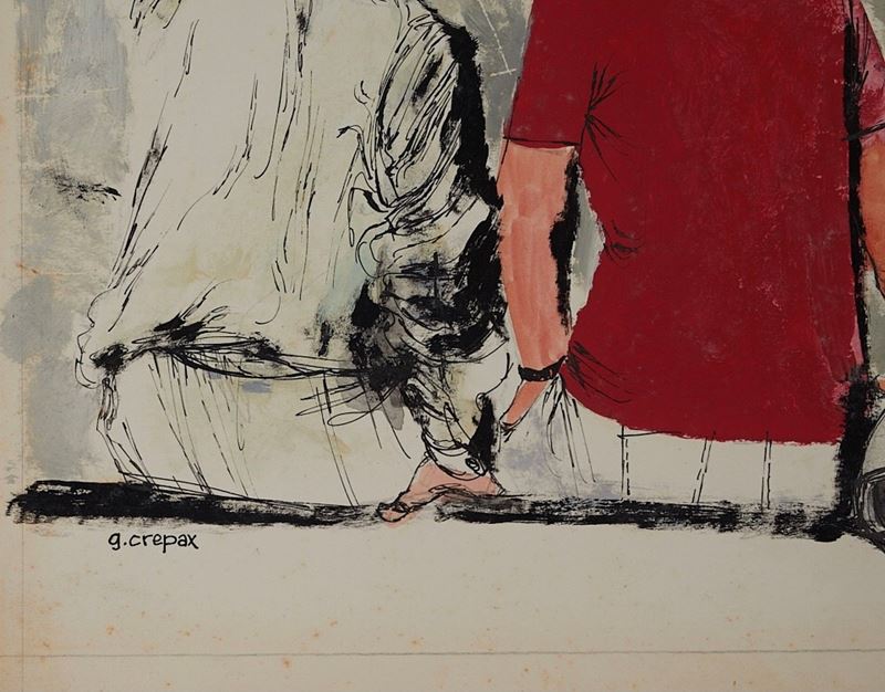 GUIDO CREPAX (Milano 1933 - Milano 2003) "Velocità 4", 1963. Acquerello e matita su cartoncino. Cm 33x25,5. Opera firmata in basso a sinistra G. Crepax. Al retro opera intitolata e datata Velocità 4, 1963.