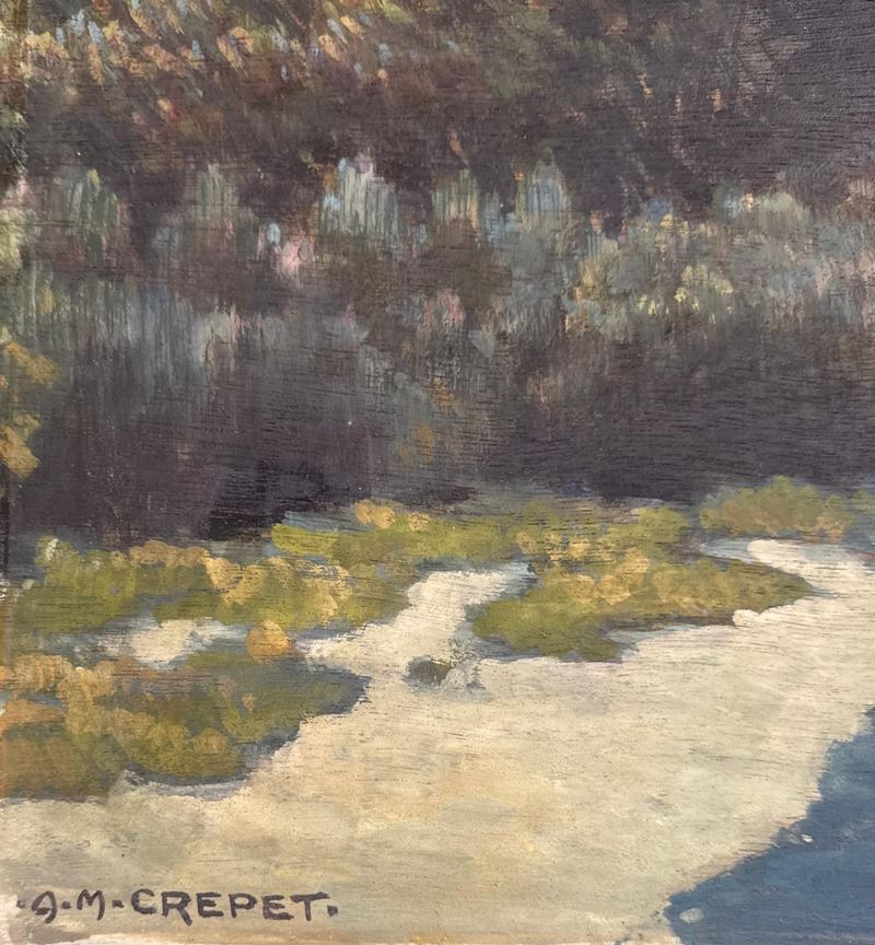 ANGELO MARIA CREPET (Mestre 1885 - Firenze 1974) "Paesaggio". Olio su tavola. Cm 65,5x80. Opera firmata in basso a sinistra A. M. Crepet.