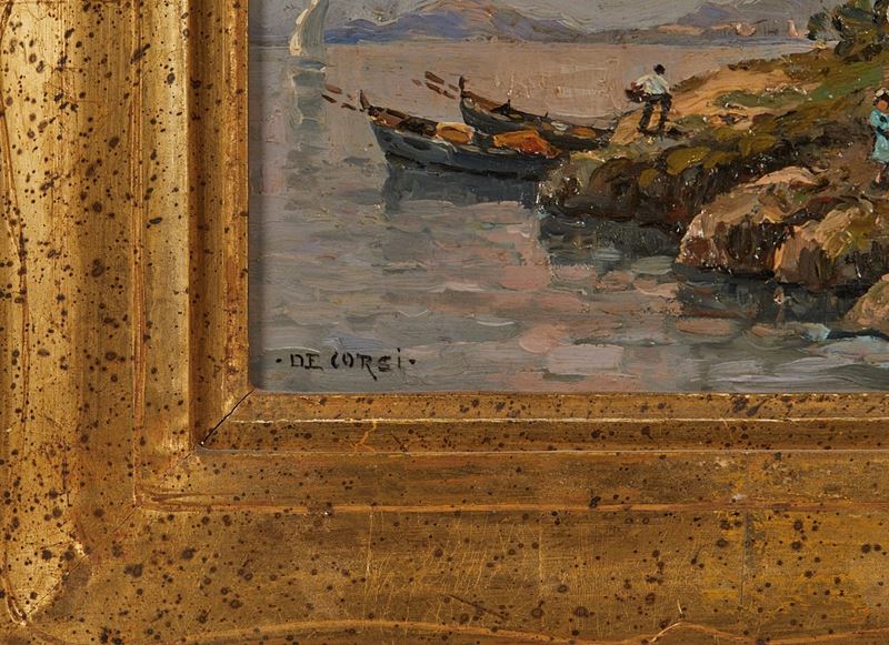 NICOLAS DE CORSI (Odessa 1882 – Torre del Greco 1956) "Senza titolo". Olio su tavola. Cm 18,5x20. Opera firmata in basso a sinistra De Corsi.