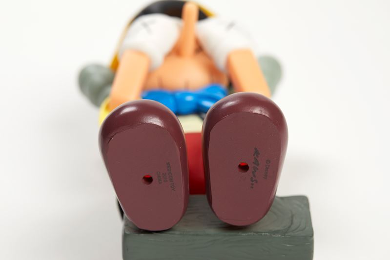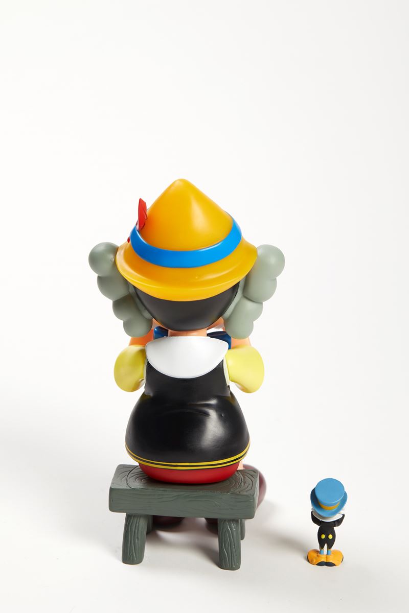 KAWS (Jersey City 1974) "Pinocchio & Jiminy Cricket", 2010. Scultura in vinile verniciato. Cm 26x12.7x11. Sotto al piede sinitro reca scritta Kaws, Disney. Sotto al piede destro Medicom Toy, 2010, Cina. Corredato di scatola originale (difetti nella scatola).