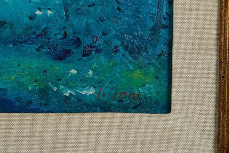 UMBERTO LILLONI (Milano 1898 - 1980) "Paesaggio", 1969. Olio su tela. Cm 40x50. Opera firmata in basso a destra Lilloni. Al retro opera firmata e datata Umberto Lilloni 1969.