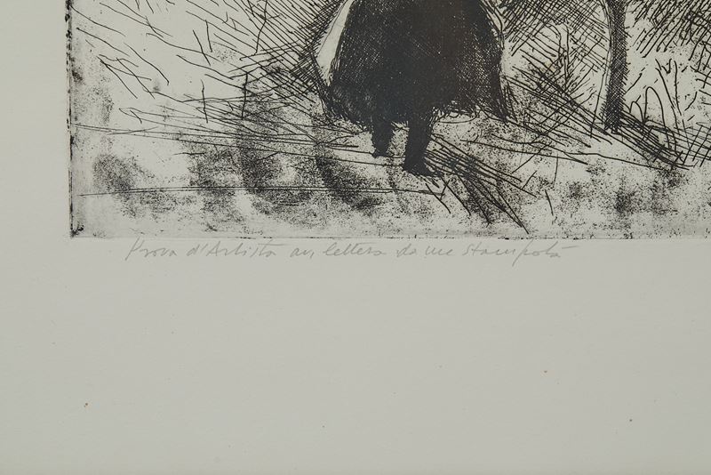 PAOLO MANARESI (Bologna 1908 - Bologna 1991) "I quattro cavalieri", 1958. Incisione e acquatinta su carta. Cm 47,5x65,5. Opera firmata in basso a destra Paolo Manaresi. Reca numeri di tiratura in basso a sinistra p.a.