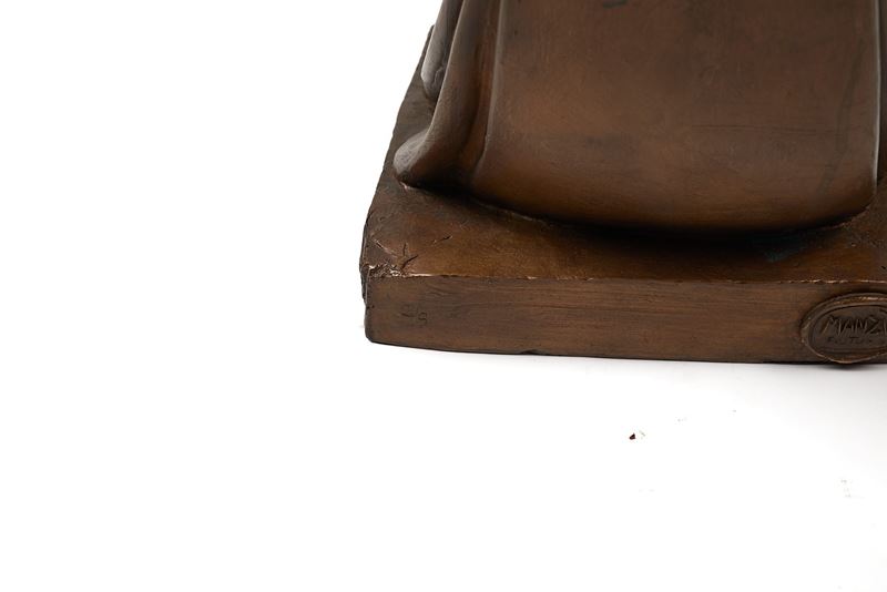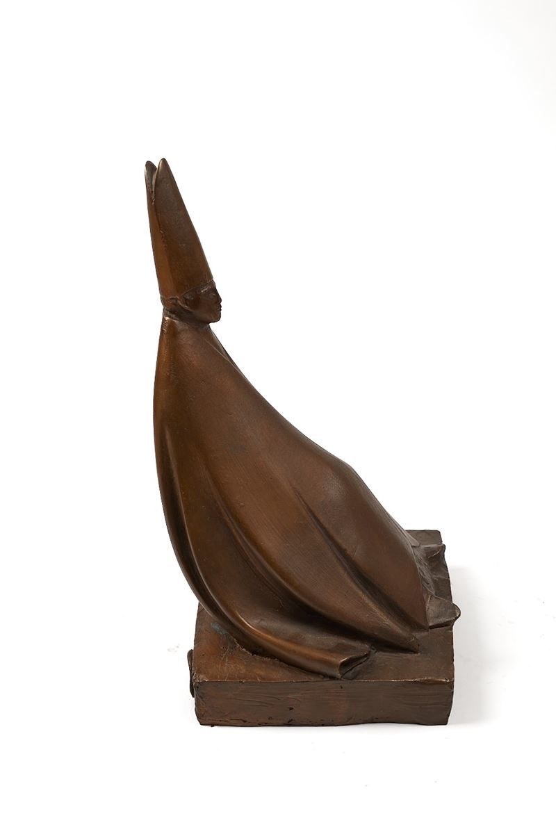 GIACOMO MANZU' (Bergamo 1908 - Roma 1991) "D'apres Cardinale seduto", 2001. Scultura in bronzo a cera persa. Cm 41x22x20,5. Opera firmata al retro Manzù. Reca numeri di tiratura 2/9. Reca timbro della Fonderia Venturi Arte, Bologna.