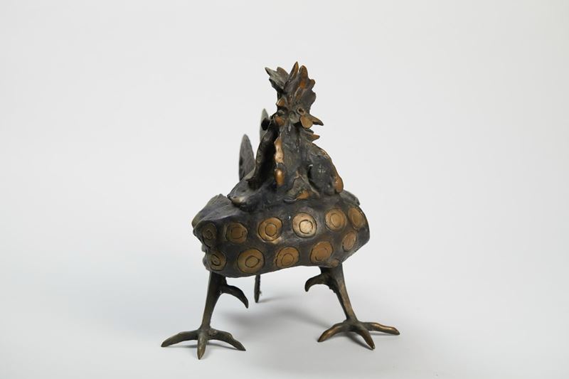 LUCIANO MINGUZZI (Bologna 1911 - Milano 2004) “Gallo”. Scultura in bronzo a cera persa. Cm 39x33x38. Opera firmata sotto la pancia Minguzzi. Reca numero di tiratura 87/1500.