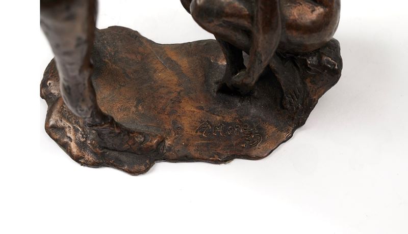 AUGUSTO MURER (Falcade 1922 - Padova 1985) "Due figure", 1979. Scultura in bronzo. Cm 32x20x12,5. Opera firmata e datata alla base Murer 79.