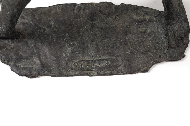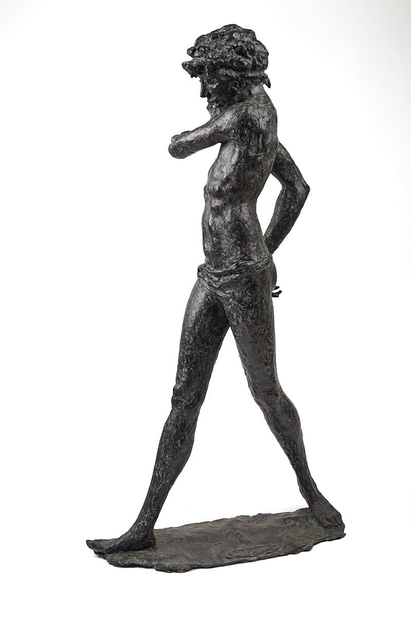 AUGUSTO MURER (Falcade 1922 - Padova 1985) "Ragazzo", 1982. Grande scultura in bronzo. Cm 85,5x45x26,5. Opera firmata e datata alla base A. Murer 82. Opera accompagnata da autentica su fotografia a firma del maestro.